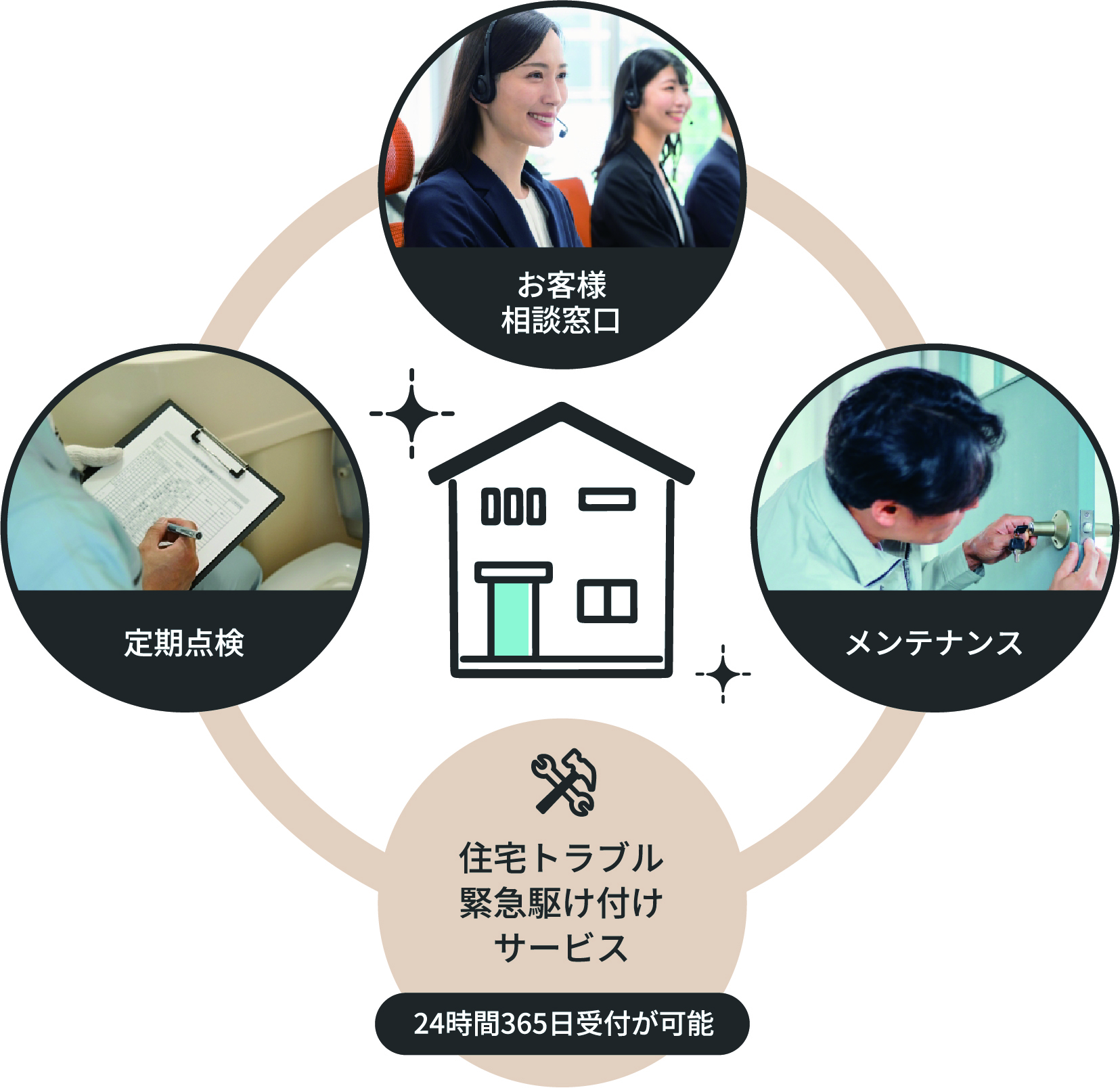 ビーエムプランニングの家づくりは建物を完成させて終わりではありません。お客様が長期にわたって安心して暮らすためのアフターサポートを行っております。 JBSが運営するMyメンテコールを導入し、万が一、不具合などが発生した場合でも他社にはない5年間保証対応(通常は2年間)をはじめ、充実のサポート体制でおすまいの資産価値を維持し、お客さまに安心と満足の暮らしを長期にわたって見守っていきます。